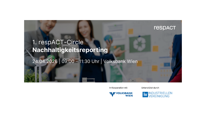 Mit dem respACT‑Circle zum Thema Nachhaltigkeitsreporting startet respACT ein neues Peer‑Learning‑Format, das Unternehmen dabei unterstützt, ihr Nachhaltigkeits- und ESG‑Reporting wirksam, praxisnah und strategisch weiterzuentwickeln. Das erste Treffen findet am 24. April 2026 bei der Volksbank Wien statt.
